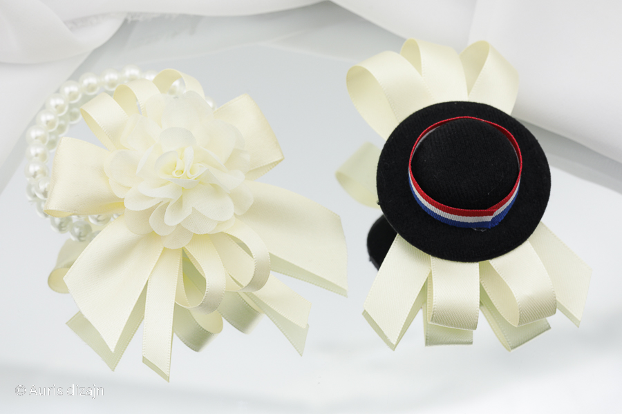 Bogatiji reveri 15Cijena po količinama4,50€ Bogatiji reveri namijenjeni su kumovima i bližoj rodbini kako bi se istaknuli od drugih gostiju. Njih imamo unaprijed izrađene što znači da izmjene na njima nisu moguće.uvećajteuvećajteuvećajteCijena se odnosi na jedan komad (rever ili narukvica), ne komplet.