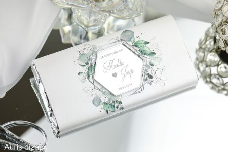 Mliječna čokolada od 80 grama (Milka) u kutijici od premium papira sa pearl efektom. Na čokoladi nalazi za akrtilni magnet s gravurom po želji.