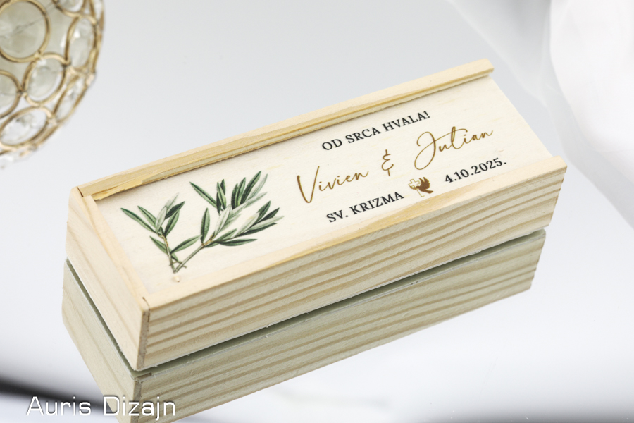 Moguće je mijenjati grafiku i tekst na poklopcu kutije. Poklopac može biti drveni (kao ostatak kutijice) ili prozirni (akrilni).